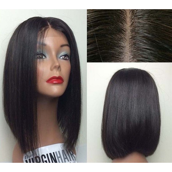 Peruca din par natural, bob lung, negru natural